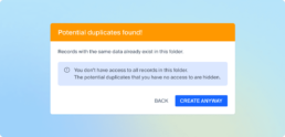A much-requested enhancement now notifies users—even those with restricted access permissions—when attempting to add duplicate records. While the full record isn’t revealed, the system flags potential duplication, helping to: